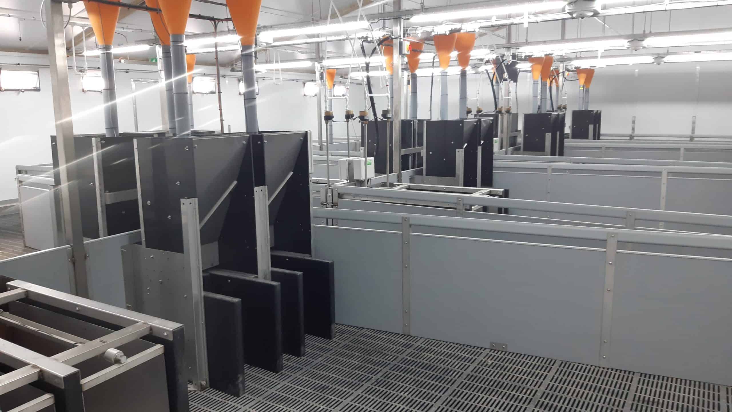 ???????? Mise en route des salles de sevrage dans la nouvelle station expérimentale de 600 truies de l’université de Leeds, au Royaume-Uni.